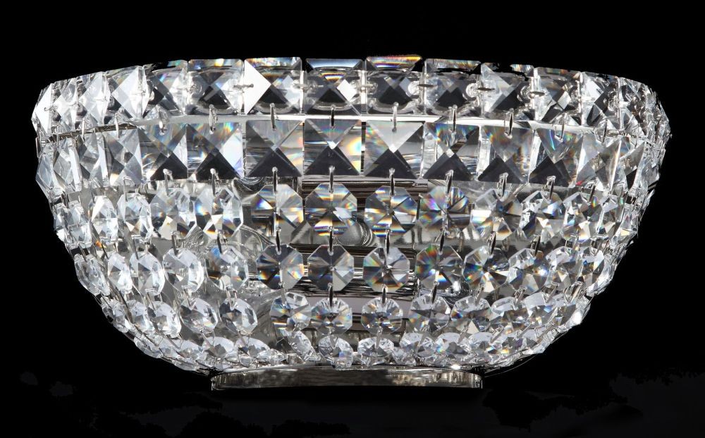 Metalowe obramowanie, kryształy w kształcie diamentu.