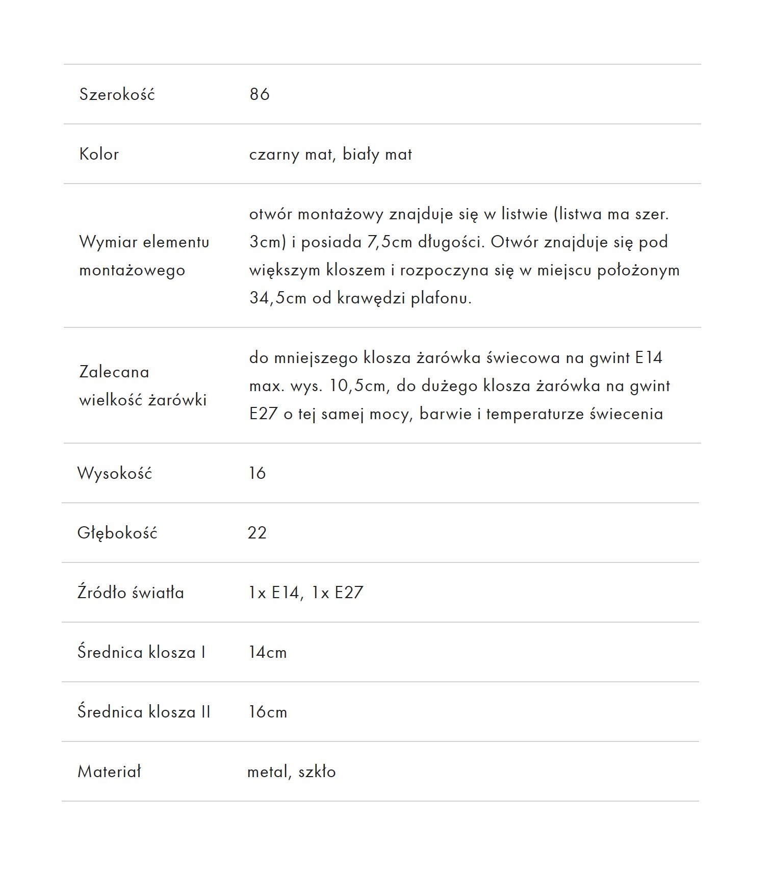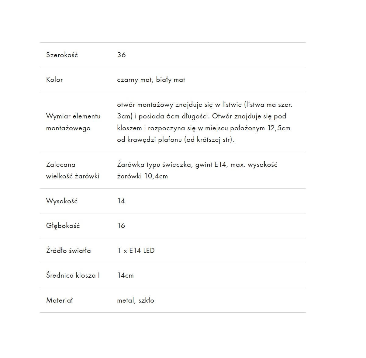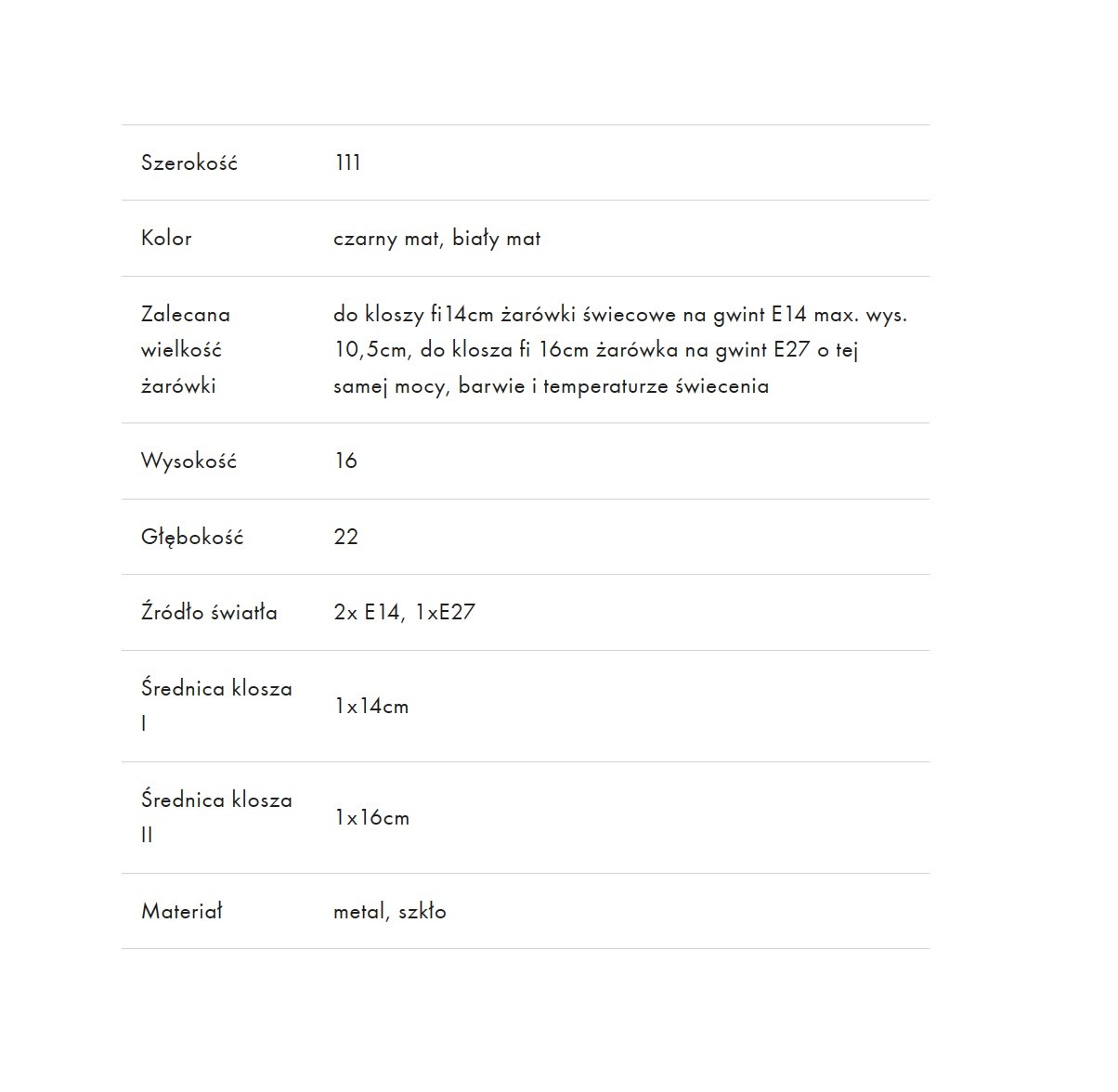 • Źródło światła Żarówka wymienna