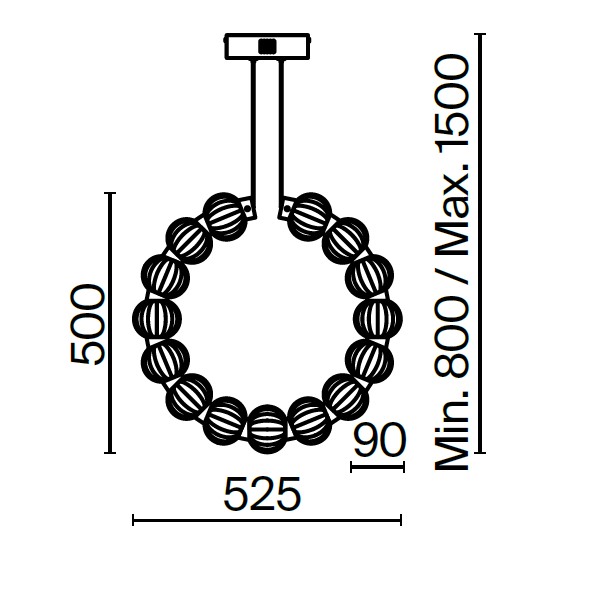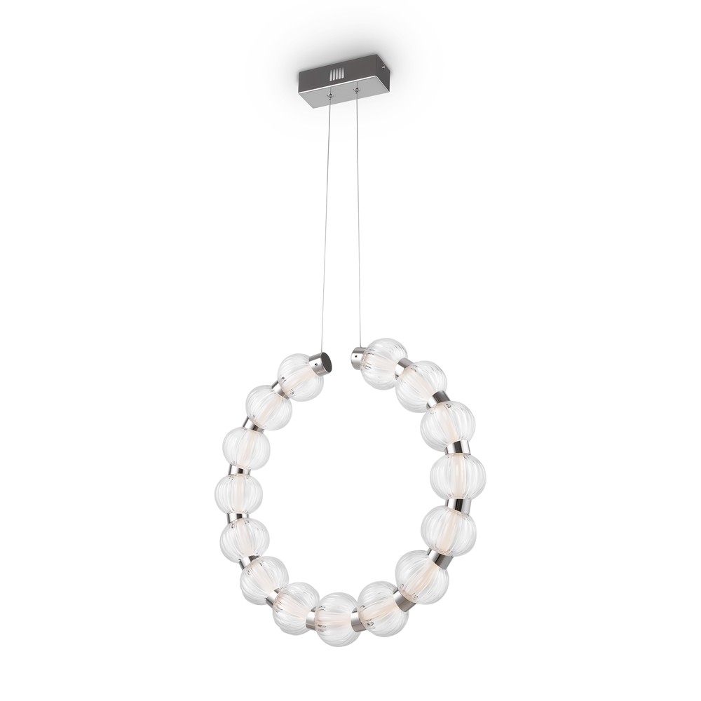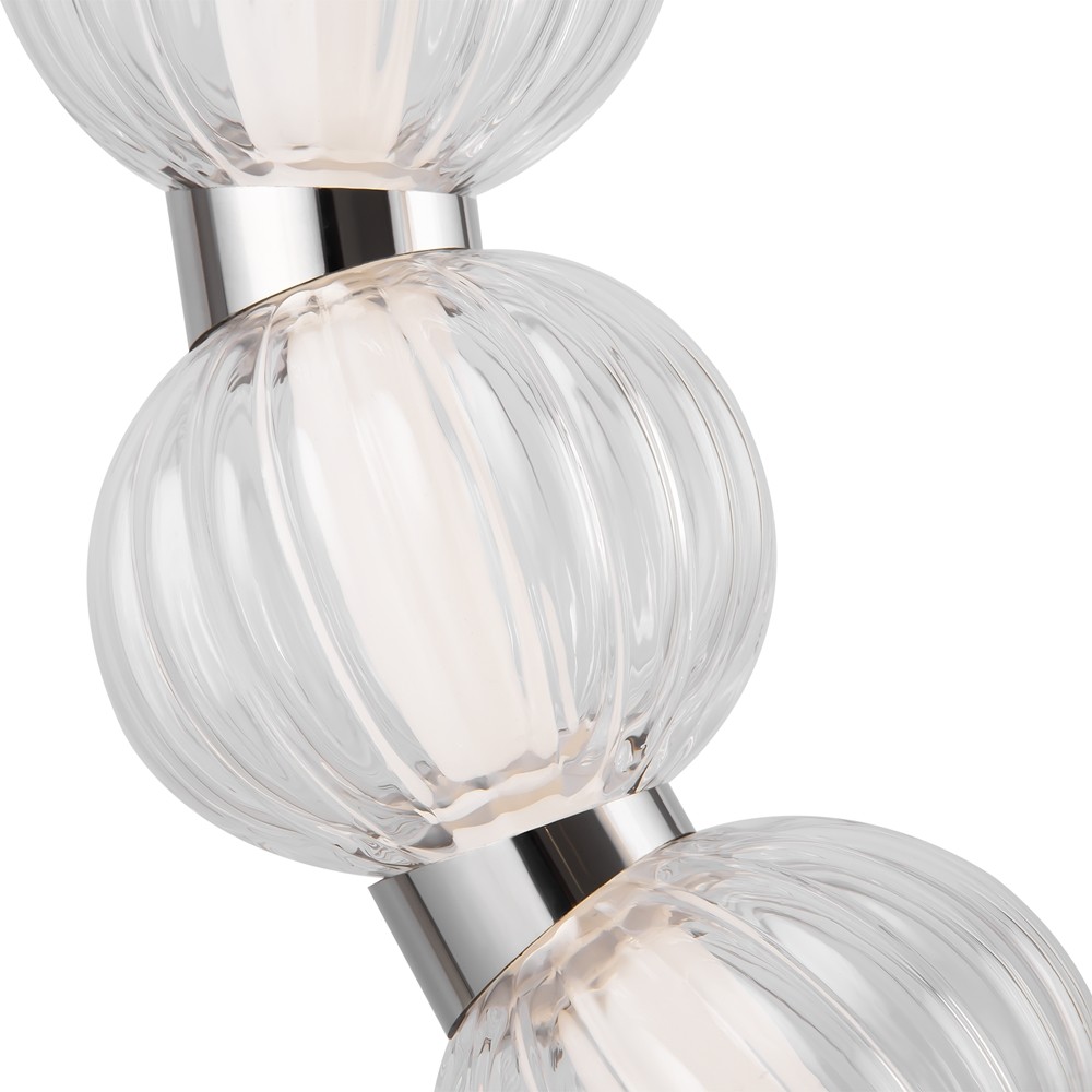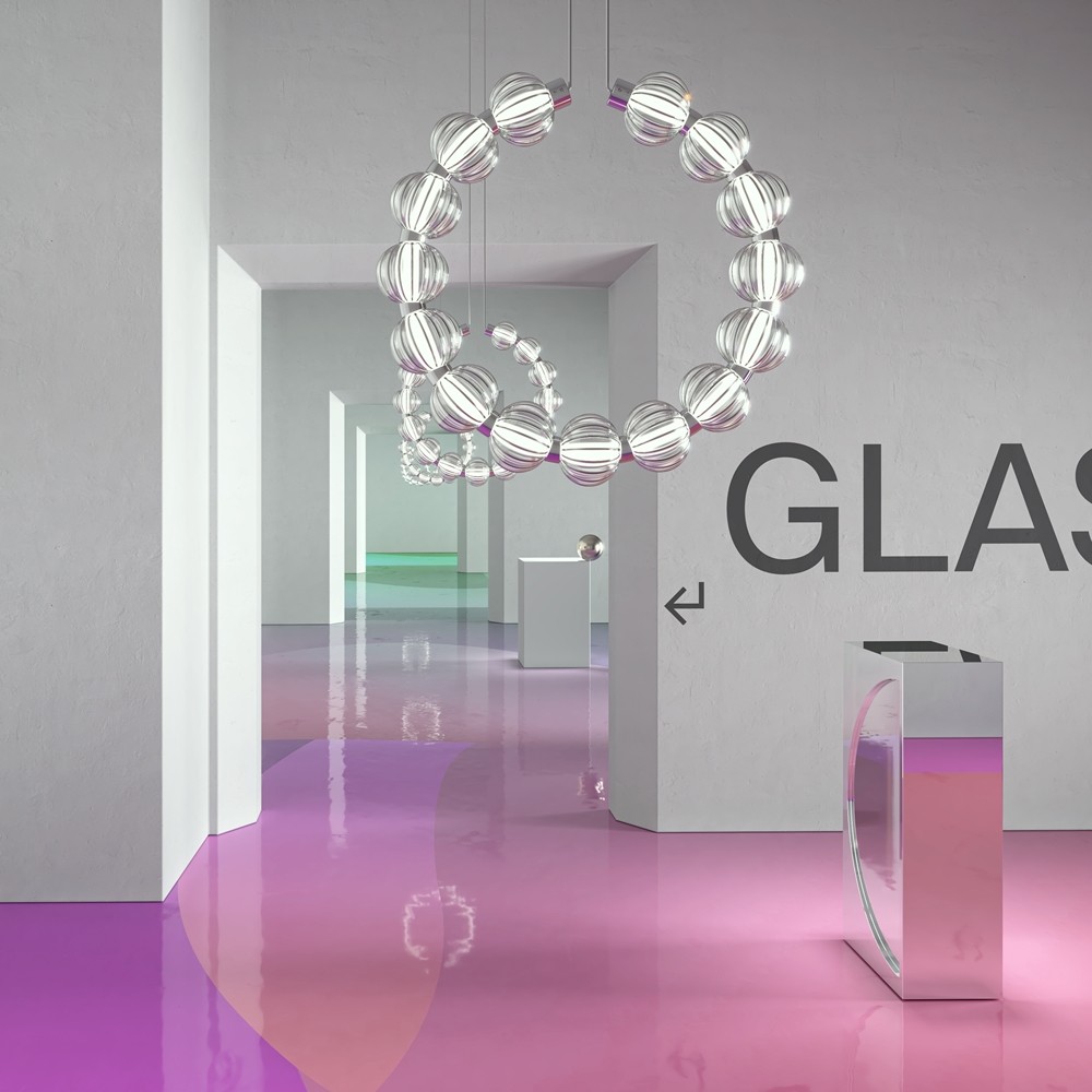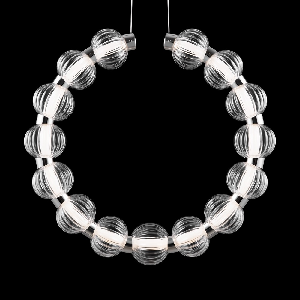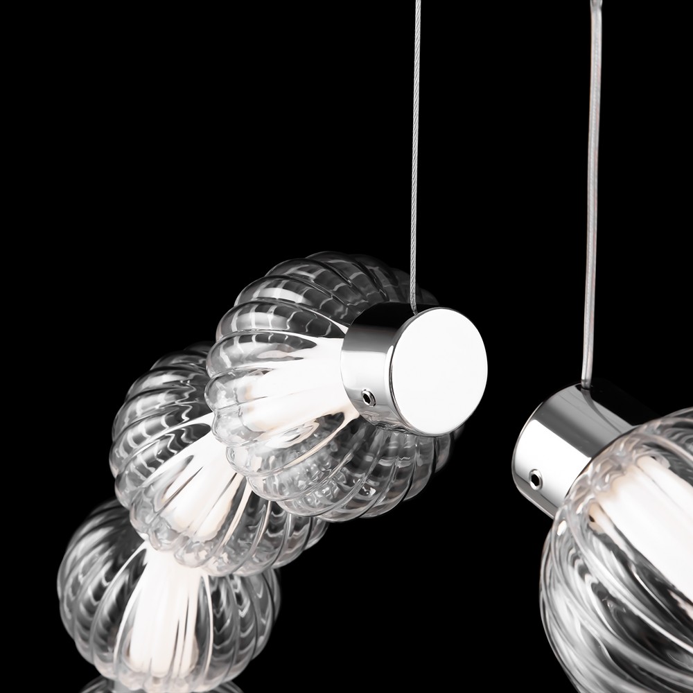 Ozdoba – szklane kule nawleczone na sznur. Szkło 3 rodzajów: formowane przezroczyste, dmuchane matowe, stemplowane barwione w masie. Tasma LED jest ukryta pod akrylowym dyfuzorem.