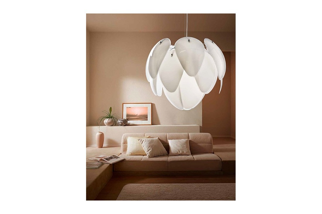 Lampa wisząca ANTIRES to połączenie oryginalności z niebanalnym stylem. Szklane płytki o zaokrąglonych krawędziach nachodząc na siebie formują nietuzinkową ozdobę. Lampa Antires z niebanalnymi kształtami i stonowaną kolorystyką z łatwością dopasuje się do pozostałych elementów aranżacji. Wyjątkowa forma nie jest tylko źródłem światła, ale także przyciągającą uwagę dekoracją wnętrza.