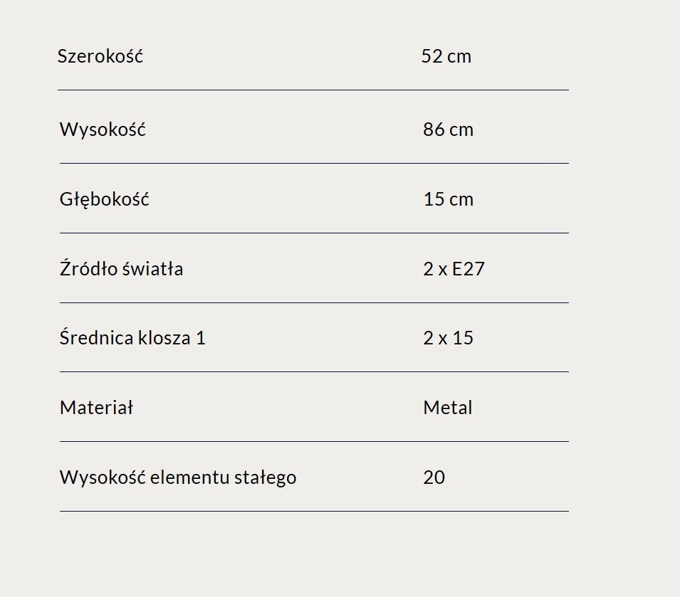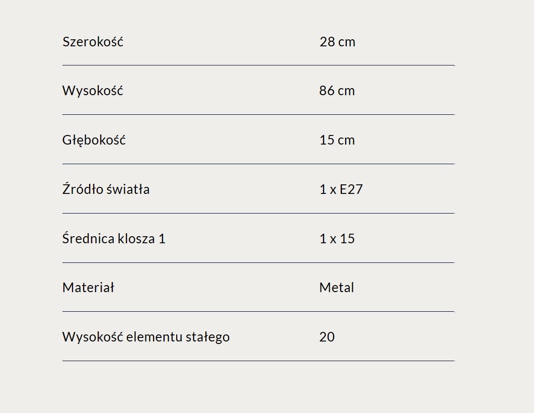 • Moc Beryl 1 - 1 x E27 max 15W / Beryl 2 - 2 x E27 max 15W / Beryl 3 - 3 x E27 max 15W