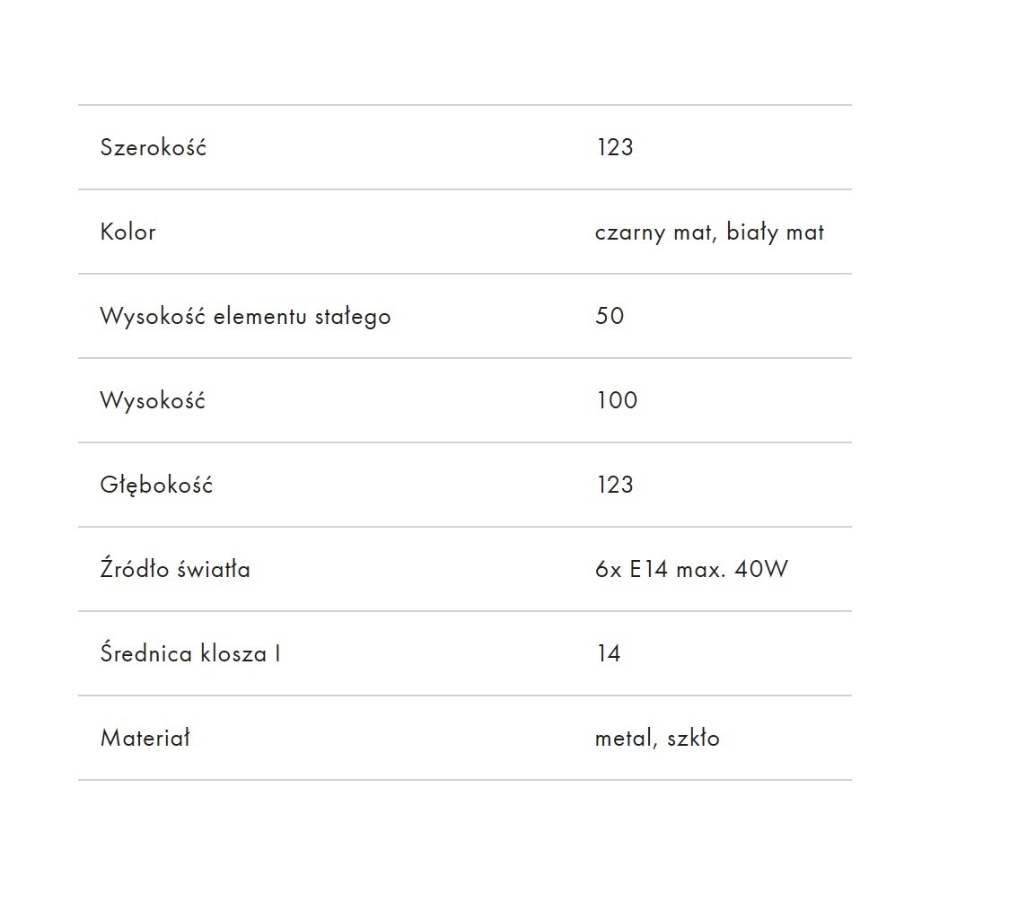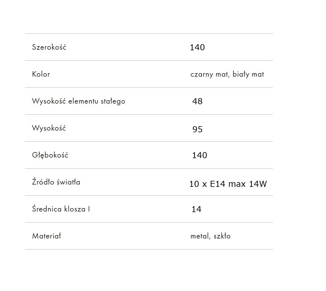 • Moc Holm 6 - 6 x E14 max 40W / Holm 10 - 10 x E14 max 14W