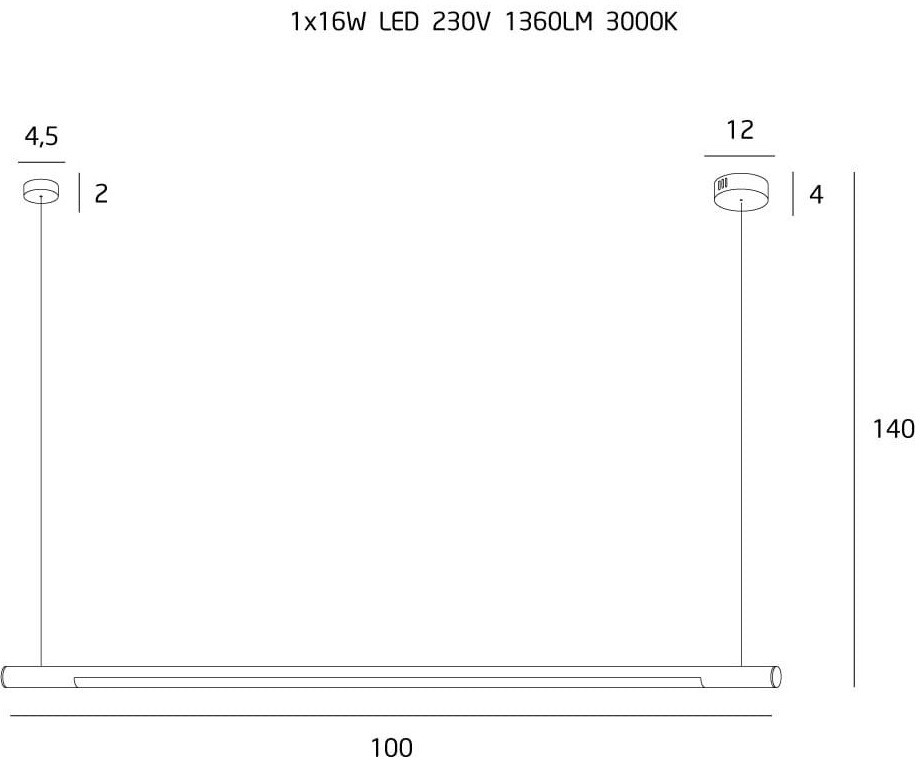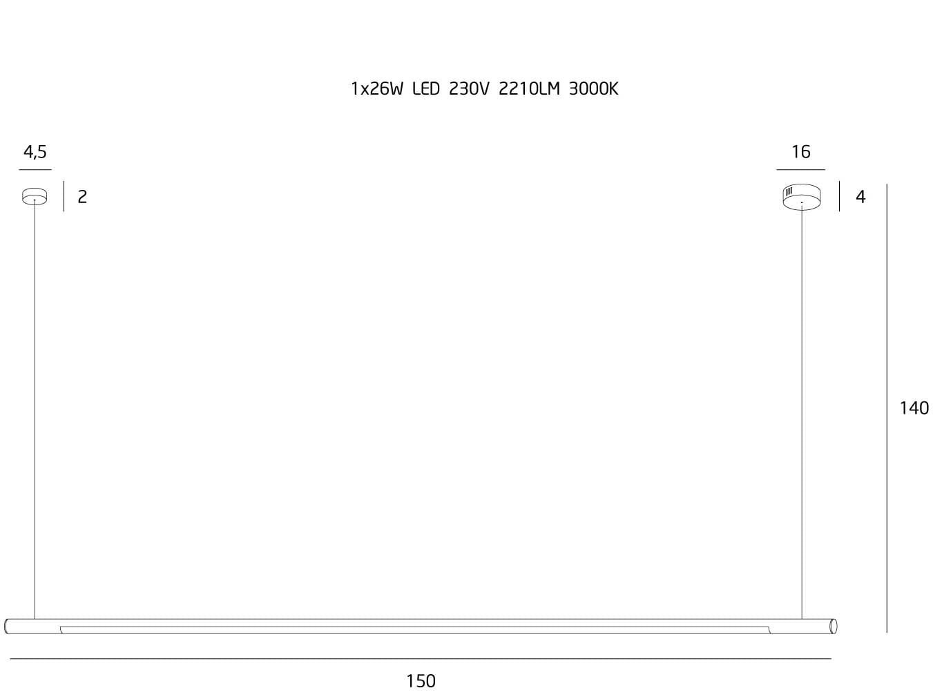 • Moc 100cm - 16W LED / 150cm - 26W LED