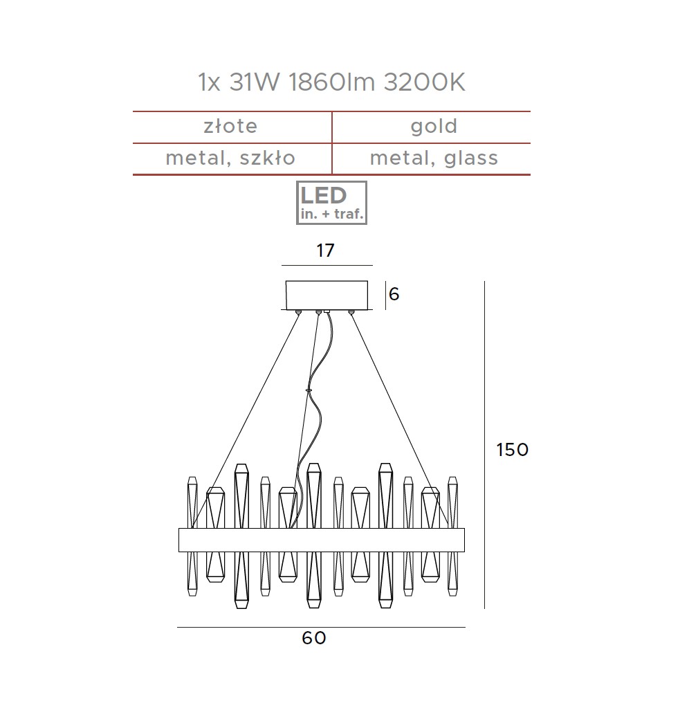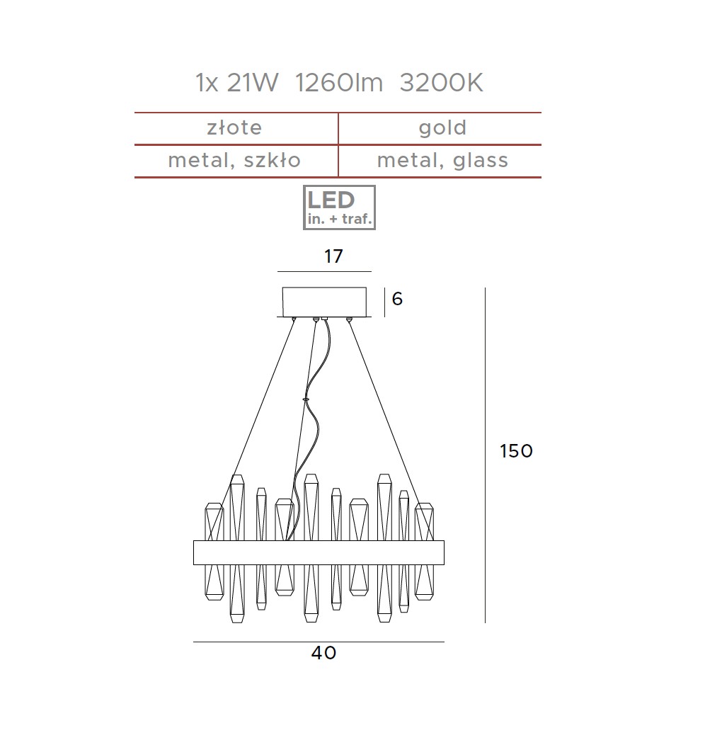 • Moc Ø 40 1x21W LED / Ø 60 1x31W LED