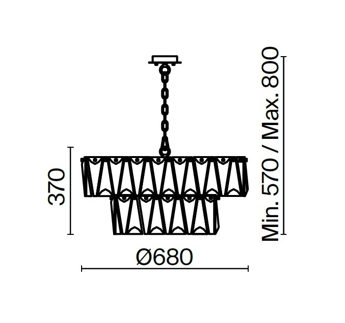 Metalowa oprawa w dwóch odcieniach: złoty, chrom. Kryształy dekoracyjne. W skład serii wchodzą lampy wiszące, ścienne, stołowe i podłogowe.