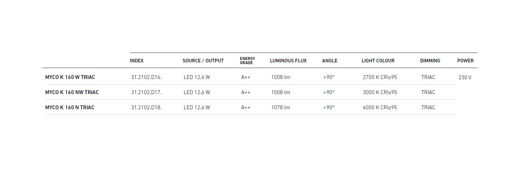 Myco K to różny sposób świecenia w ramach jednej rodziny lamp. Połączenie światła skupionego, rozproszonego z zaletą reflektorów. Dzięki zróżnicowanym kształtom lamp można puścić wodze fantazji i zbudować niepowtarzalny charakter wnętrza. Stanowią uniwersalne rozwiązanie, które sprawdzi się zarówno jako lampka nocna, jak i oświetlenie lustra czy ciągu komunikacyjnego.