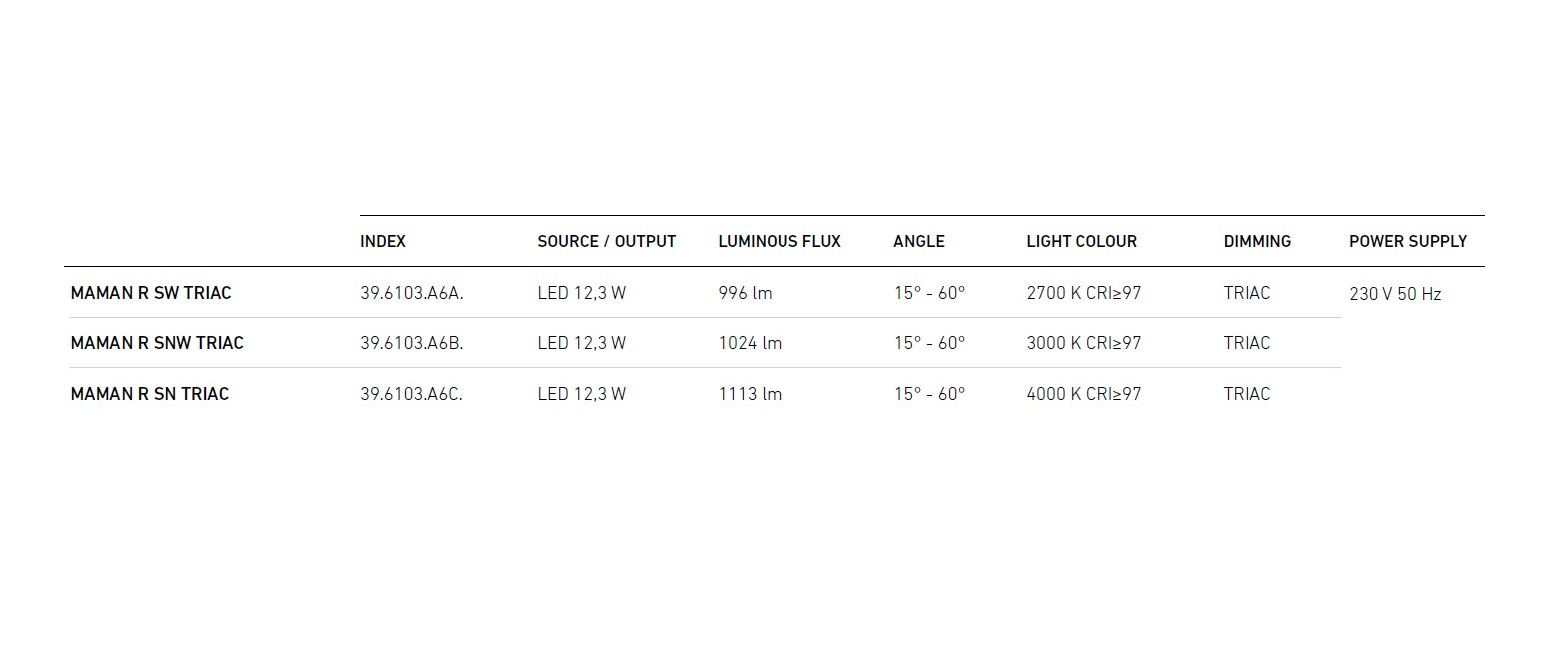 Seria Maman R ON dostarczana jest wraz z zasilaczem z technologią ściemniania TRIAC.