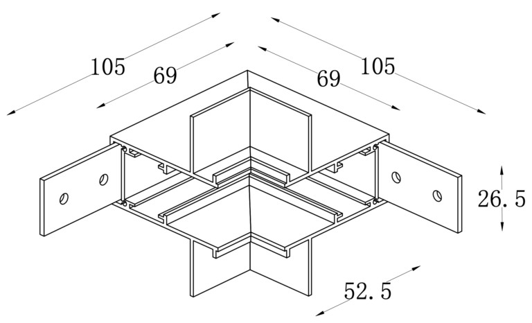 Łącznik wewnętrzny TYP C do łączenia szyn w układzie ściana + sufit.