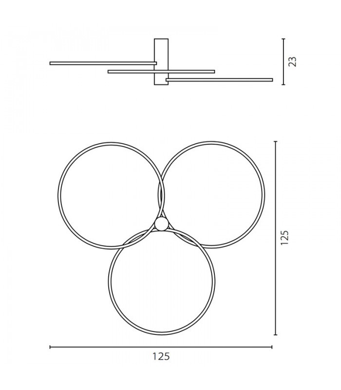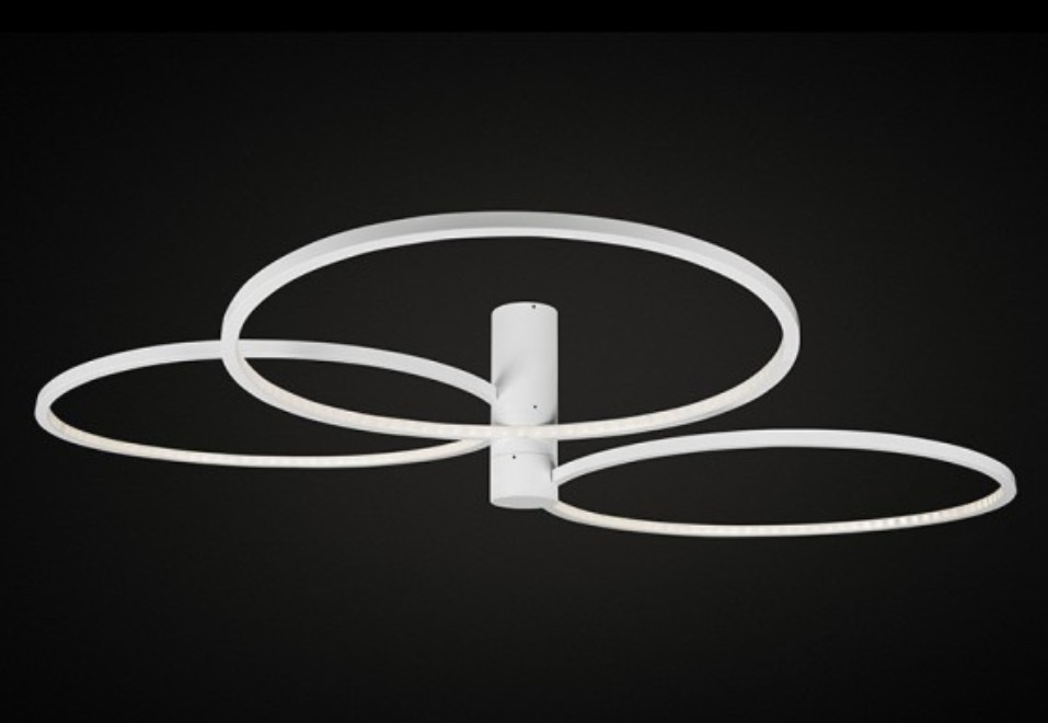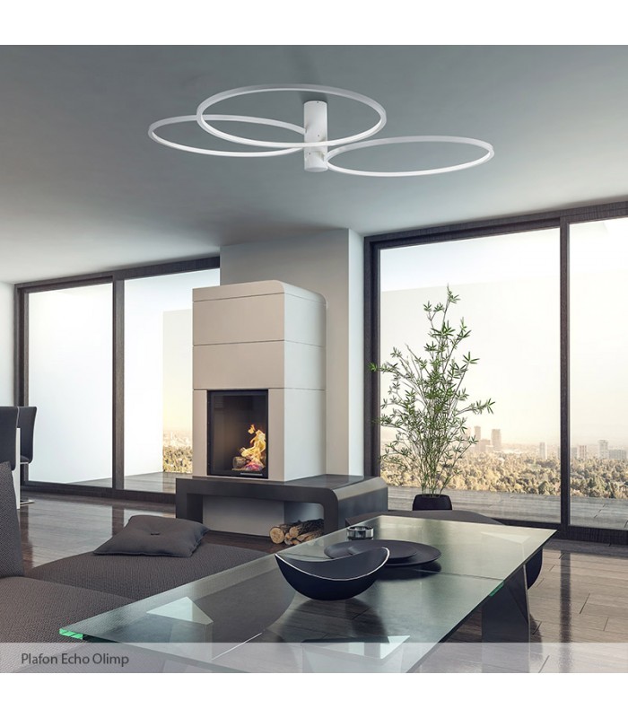 ECHO OLIMP składa się z trzech okrągłych profili aluminiowych ze zintegrowanym mlecznym dyfuzorem do wewnątrz, które można względem siebie obracać co umożliwia ich dowolne ustawienie. Istnieje możliwość dołączenia dodatkowych kół.