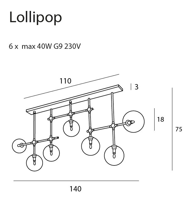 Lollipop to rodzina nowoczesnych opraw świetlnych. Doskonale pasuje do wnętrz o wystroju industrialnym czy minimalistycznym, jednak sprawdzi się również w wielu innych aranżacjach. Lollipop to imponująca, niemal półtorametrowa oprawa na podłużnej ramie o ciekawym kształcie, oraz trzy lampy z ruchomymi ramionami: wisząca, stojąca i stołowa. Mosiężne lub czarne pręty, na których osadzone są sferyczne szklane klosze z żarówkami, można dowolnie regulować, dzięki czemu kształt lampy można dostosować do swoich potrzeb. Geometria, statyczność i kąty proste, łagodne przejścia i fale czy dzika kompozycja, pełna ukośnych linii zaskakującej nieregularności – to zależy od Ciebie. Niezależnie od ustawienia oprawy zapewniają dużą ilość rozproszonego światła, a ich niezwykły, intrygujący design przyciąga wzrok nie tylko wtedy, gdy są rozświetlone. Lollipop to asymetria, zabawa formą i szczypta szaleństwa w najlepszym stylu.