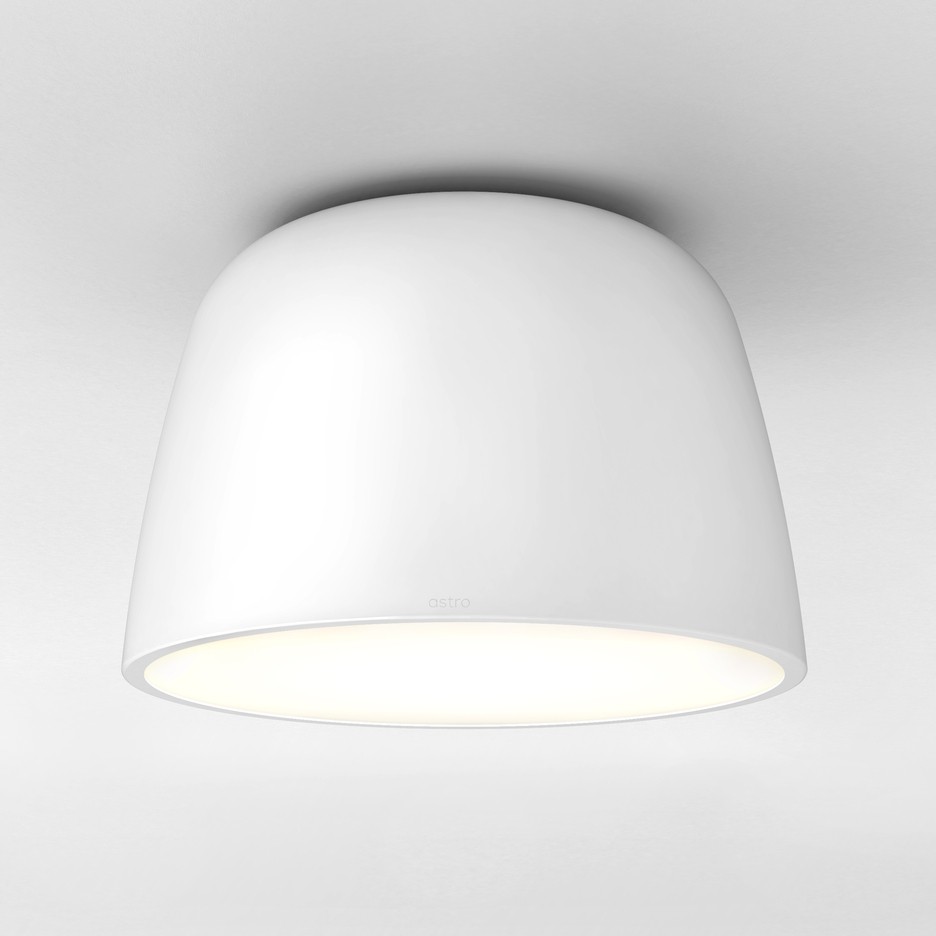 Lampa sufitowa Taiko przypominająca swoim kształtem dzwon, jest na tyle uniwersalna, że nadaje się zarówno do stosowania w pokojach hotelowych, jak i na korytarzach. Klosz jest wykonany ze stali tłoczonej w odcieniu matowej czerni lub bieli, a biały dyfuzor z poliwęglanu zapewnia jasne, ale klimatyczne światło.